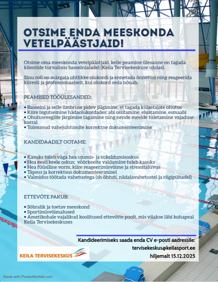 Keila Tervisekeskuse ujulas toimuvad 5.detsembril…